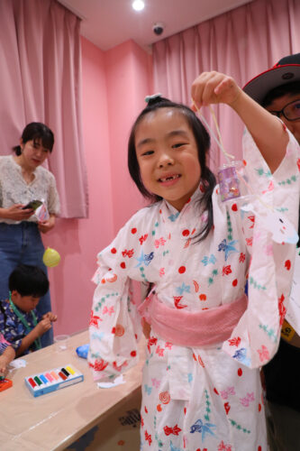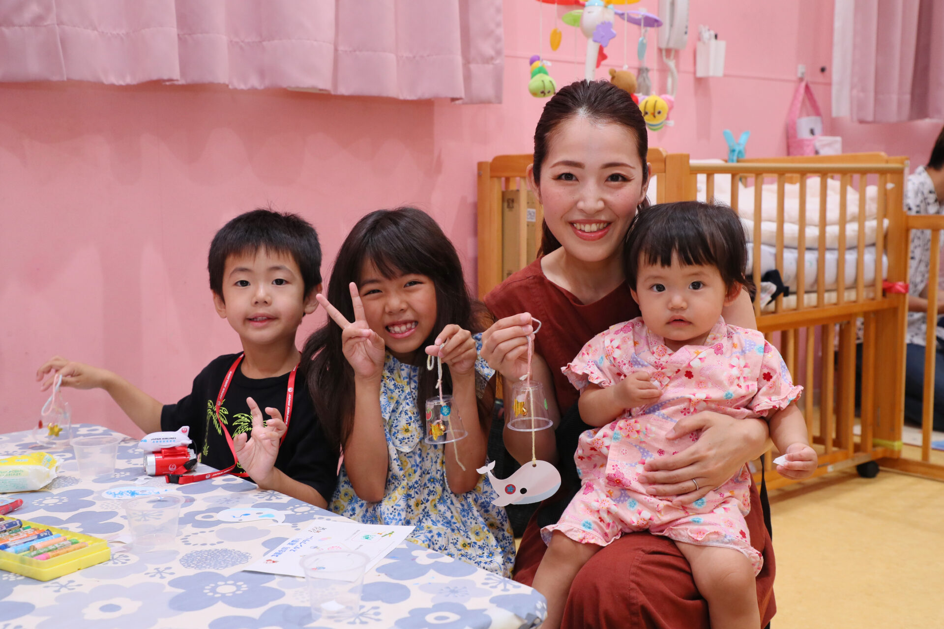 唐橋くじら小規模保育園さんの出し物、風鈴作り。