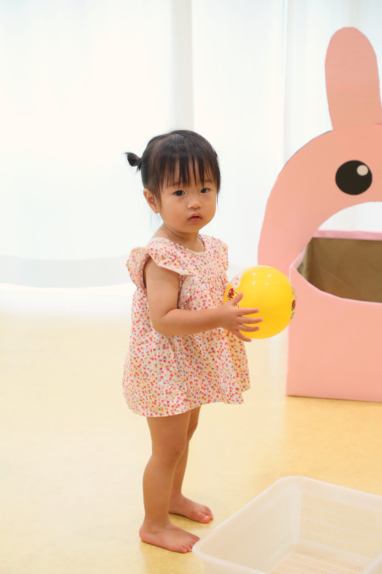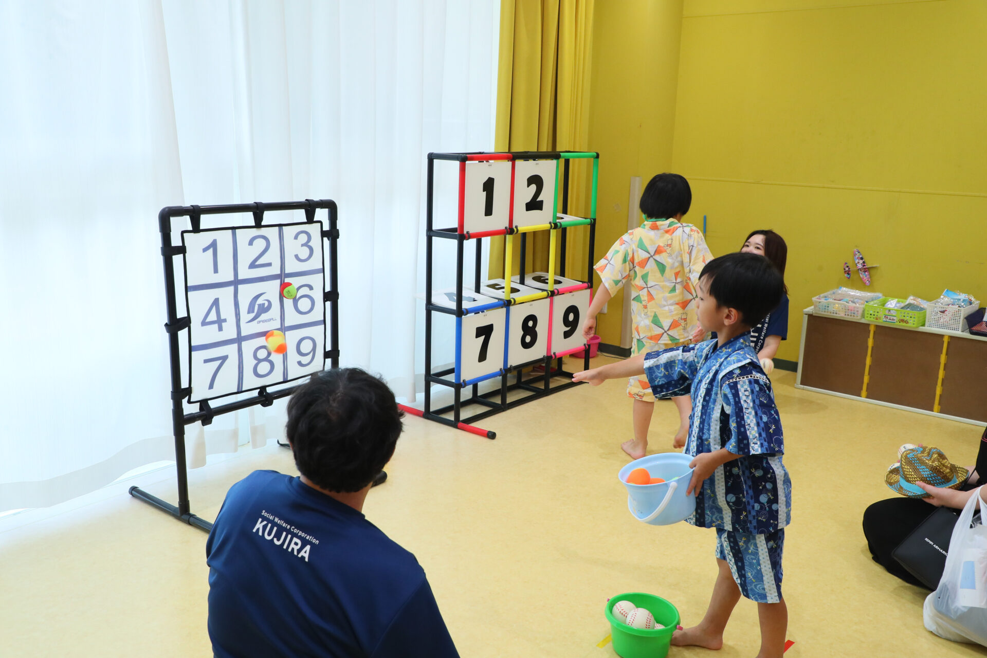 0~2歳児さんと3~5歳児さんで、投げるボールの大きさや的が変わるので、程よい難易度で子どもたちも大喜びだったようです!