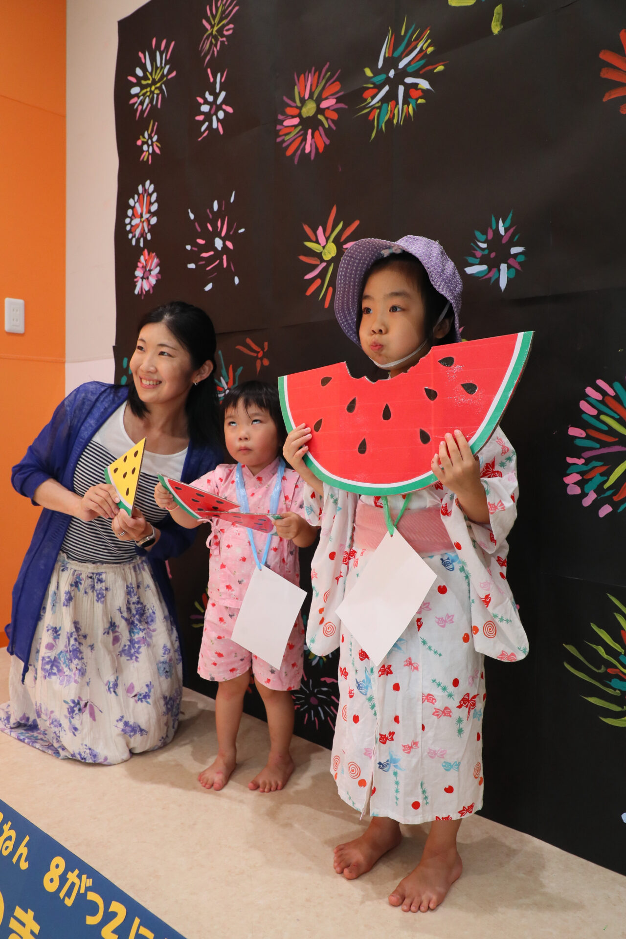 今年はくじらチームさんが描いた素敵な花火を背景に、顔出しパネルやスイカと小道具を新たに!素敵な写真がたくさん撮れていると嬉しいです😊
