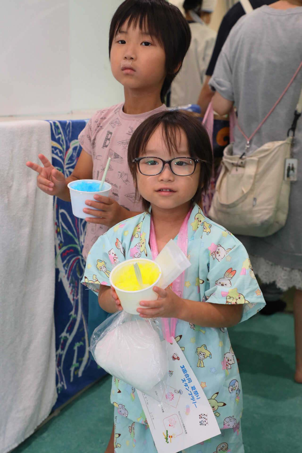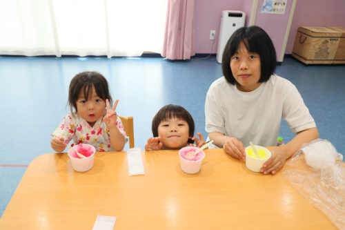 今年は、ヨーヨー釣り・ストラックアウト・ワニワニパニック・風鈴作り・フォトスポット・かき氷に加えて、新たな試みとして親子で作るわたがしコーナーと、盛だくさんの夏祭りでした!