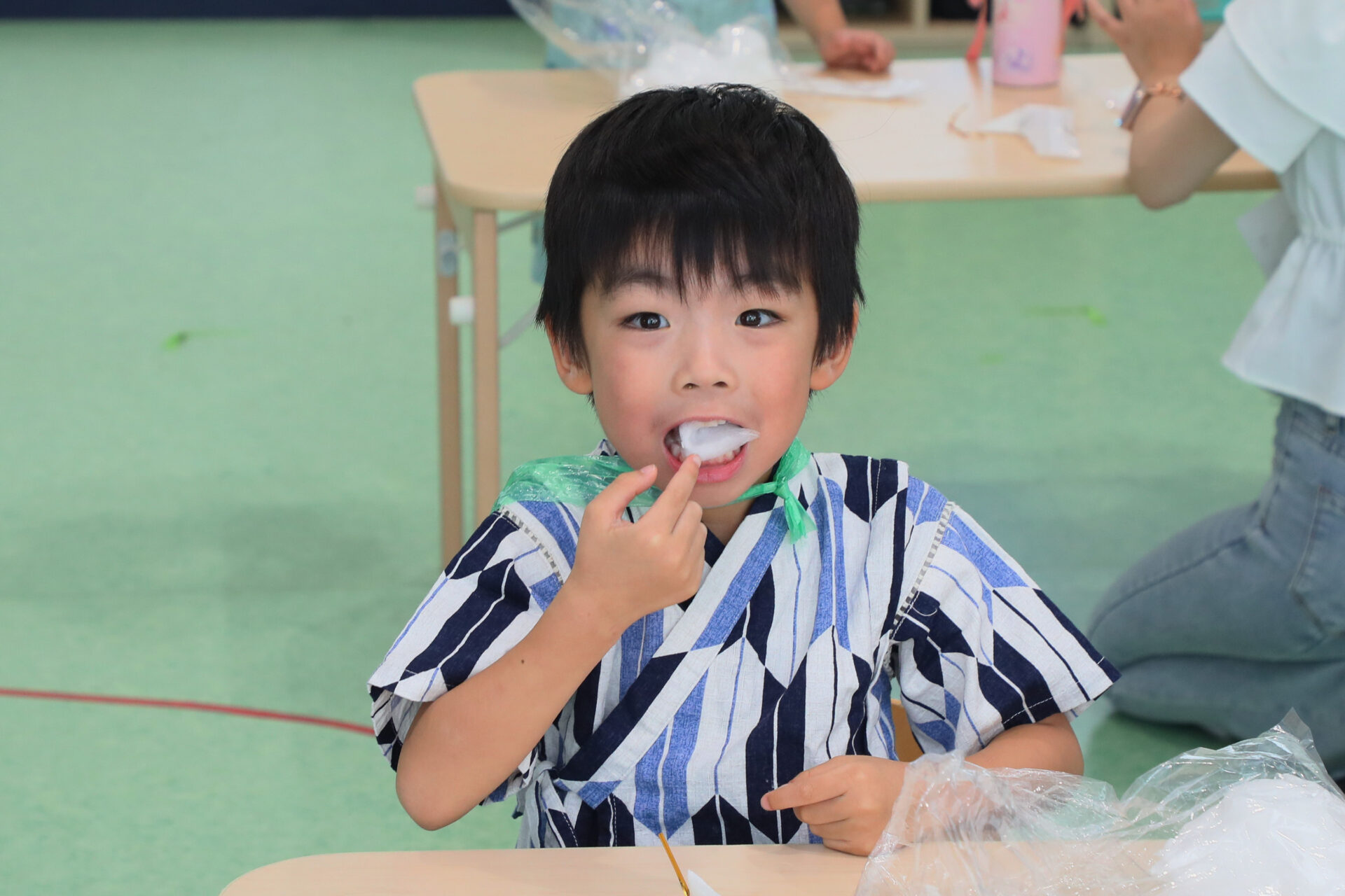 シロップを見ると、前日から「いちごにする!」と言っていたお友だちが、ラムネ味を選んでいたり(笑)