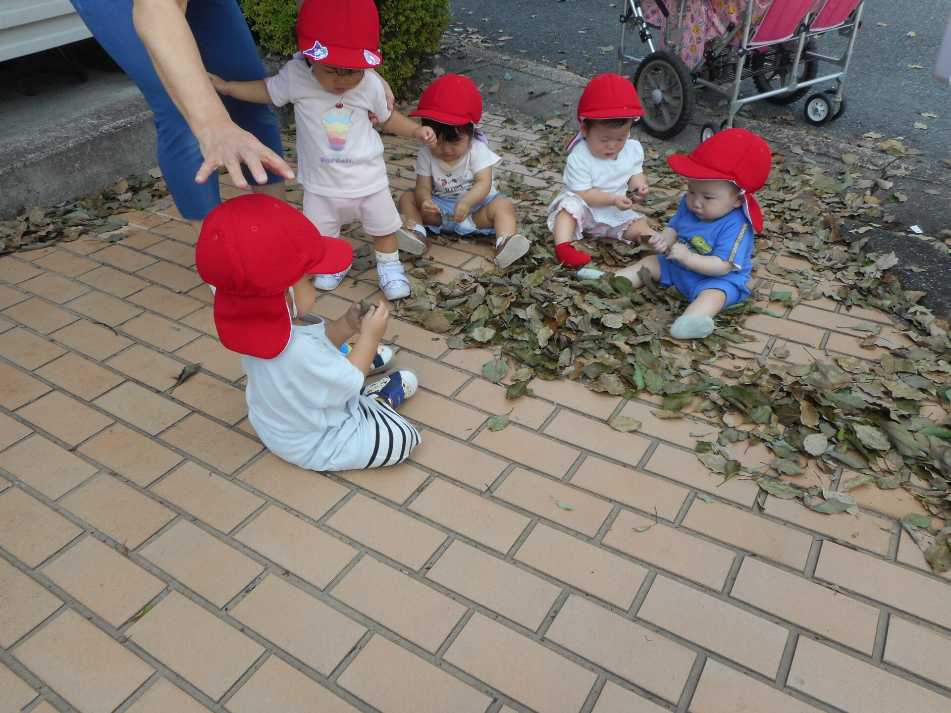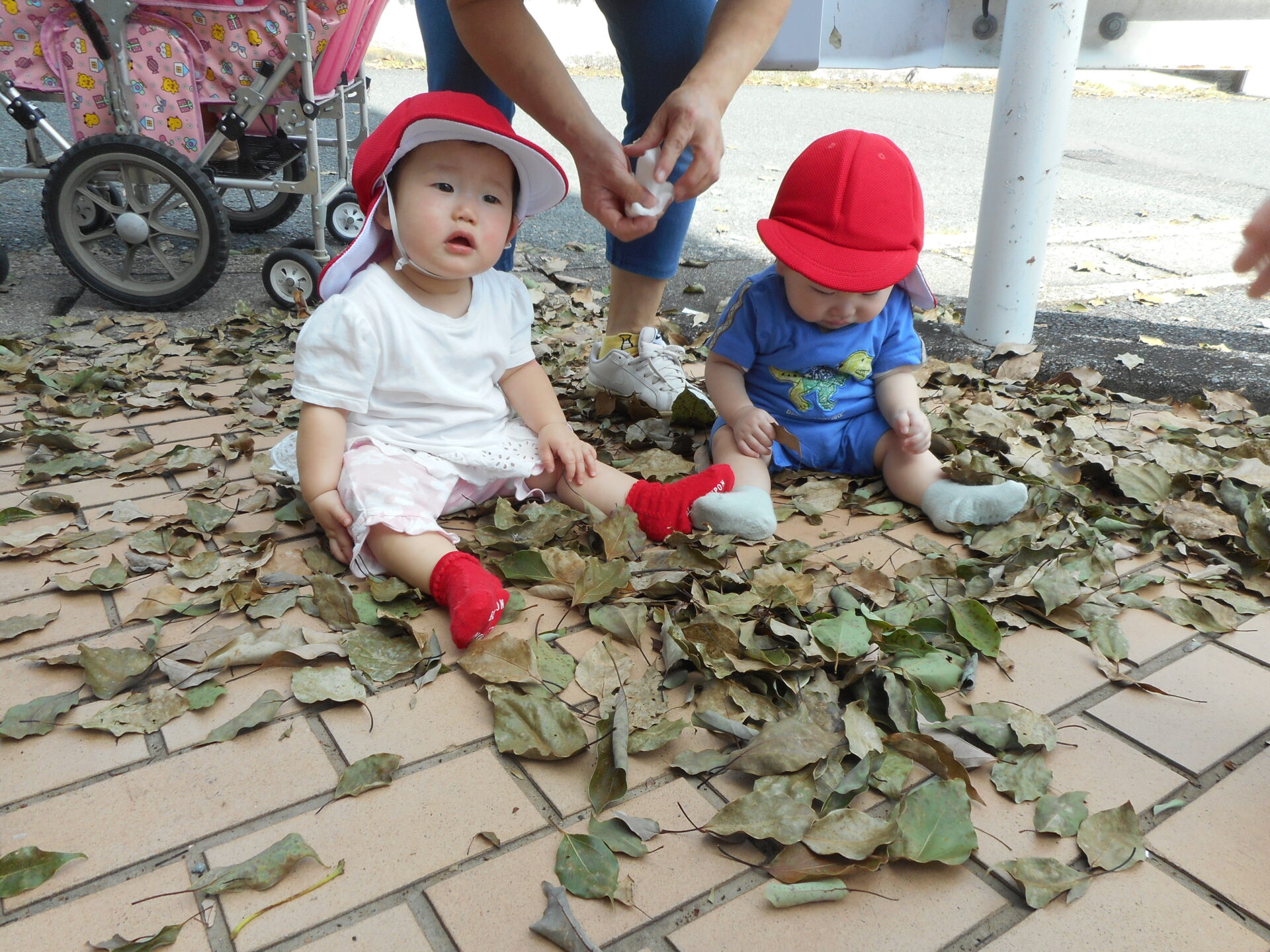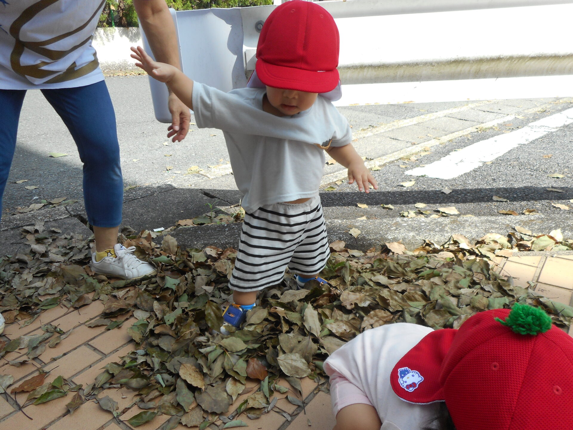バギーに乗って行ったお友だちも、散歩先で葉っぱに興味を示し触ることを楽しんでいます。