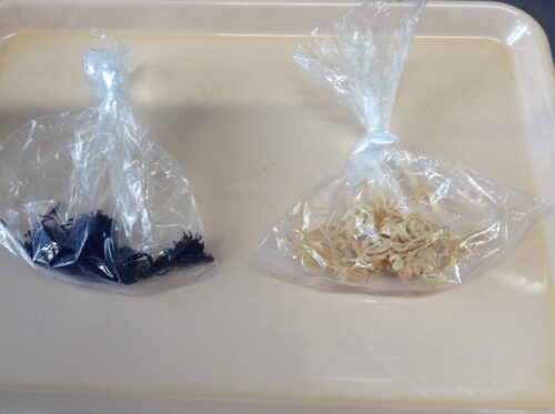 そして当日、水分をたっぷり吸って、大きくなったひじきと切り干し大根を見せに行きました。