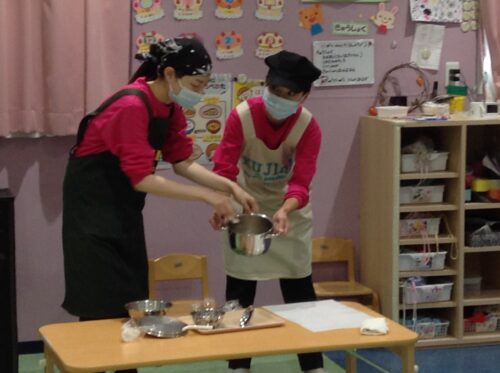 今回、園で初めておだしの味見、味噌汁の作り方を実演してみましたが、大人より子どもの味覚の方がしっかりしていて、想像豊な感想が聞けて嬉しかったです。