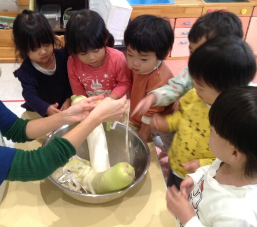 先日、保護者様より、立派な大根をたくさんいただきました!