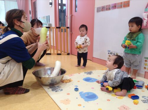 子どもたちにも見せたいな~と思い、2歳児・あめチームのお部屋にお邪魔しました。