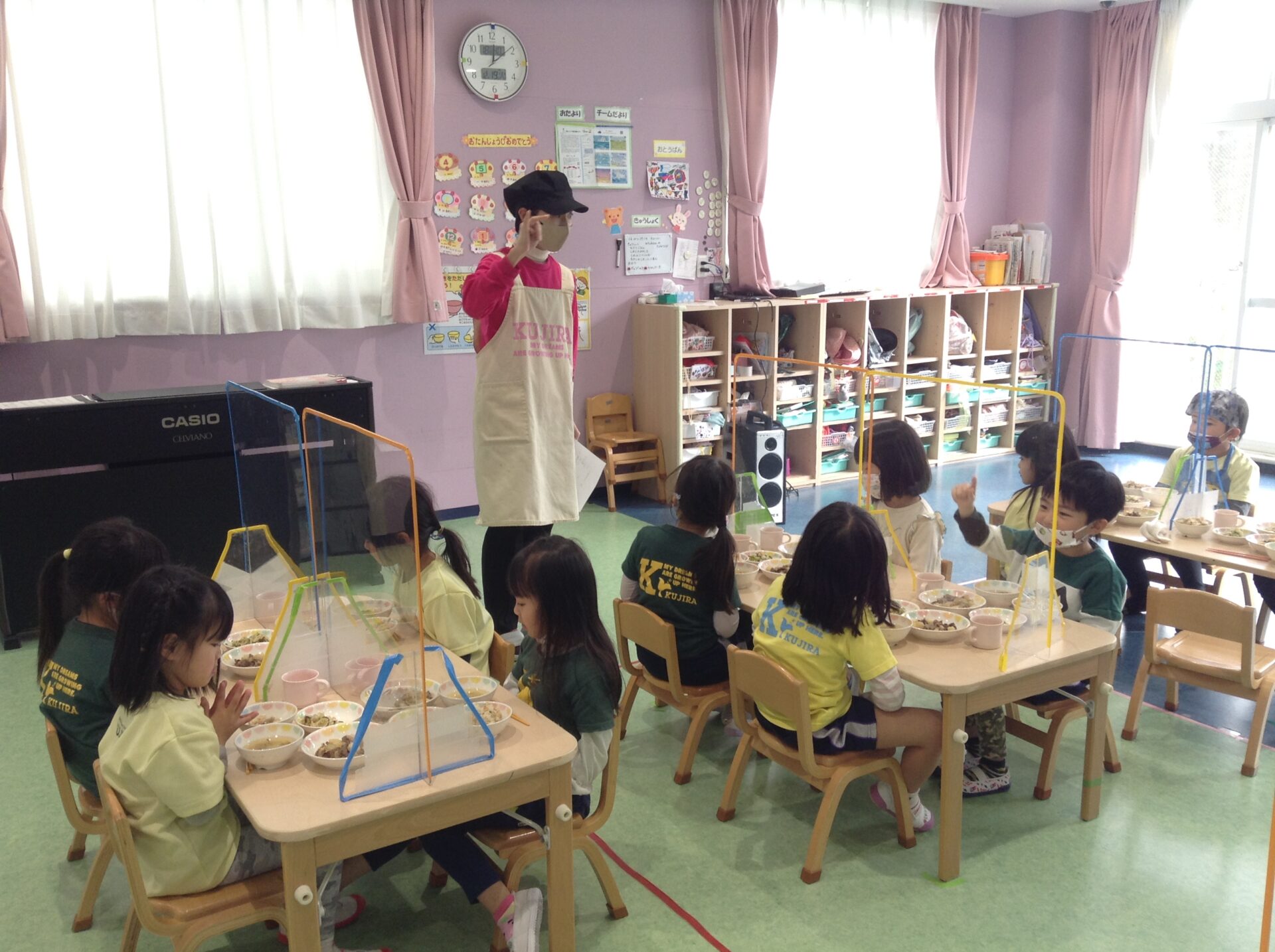 4・5歳児、そら・くじらさんのお部屋に行くと、「今日の肉じゃが人参がない~!」